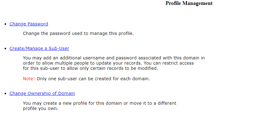 - Assign sub-user access to manage either parts of or all information related to this name.